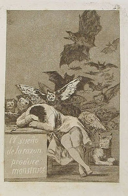 La pregunta no parece demostrar un vinculo evidente, algo así como una conexión necesaria entre el pintor español Francisco de Goya y Lucientes (1746-1828) y la ensayista Susan Sontag(1933-2004). Más bien un anacronismo deliberado o una atribución erronea. ¿De donde (me) y por consiguiente nos urge este vinculo interrogativo, acaso?. Una ocurrencia caprichosa, unas líneas dignas de efemérides en alguna publicación perdida, tal vez, quizas, por que no?. ¿Por que entonces abocarse a forzar una relación que carece de sentido inmediato?. Pérdida de tiempo, hobbie, acallar el vacío (la hoja en blanco tal vez), ocupar espacio en la escritura hedonista de un blog personal...Tras revisar los exquisitos ensayos de la autora de "ante el dolor de los demás" o "sobre la fotografía", podemos degustar una lúcida mirada (no barthesiana ni semiótica) sobre el valor del dispositivo óptico en la moderna cultura de masas, en sus propios términos, el valor de la mirada fotográfica sobre aquello que se construye como lo "real" y adquiere densidad ontológica. Por cuanto discurso performativo, la mirada fotográfica y por consiguiente el valor de la imagen o el ocularcentrismo (de acuerdo a M. Jay), que van adquiriendo en la categoría de 'experiencia' que tematizara W. Benjamin. Quizás el quid de la cuestión, se halla en la distancia que supone, mirar el dolor de los demás. He aquí el vínculo con F. Goya, contemporáneo de la guerra de la independencia durante 1804-1814, también abordara el dolor-horror ante los demás (vale citar 'Desastres de la guerra' iconografía más emblemática sobre ello ). Sea casualidad de la industria editorial, que la edición de Alfaguara de "ante el dolor de los demás" de Sontag, lleva como ilustración de portada lámina 36 de la serie de aguafuertes 'Desastres de la guerra'.